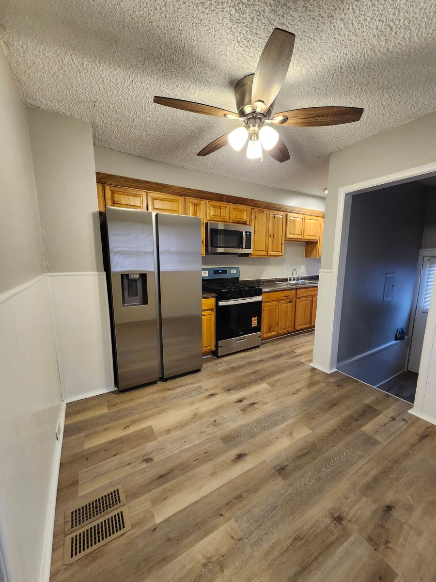 Interior Upgrades & Finishes Inside, bright fresh paint and a mix of restored hardwood and new Luxury Vinyl Plank flooring create a warm, low-maintenance environment. The kitchen features new stainless steel appliances and an efficient layout ideal for everyday cooking. The bathroom has been fully retiled, providing a clean, contemporary feel. Abundant natural light highlights the updated finishes throughout the home.